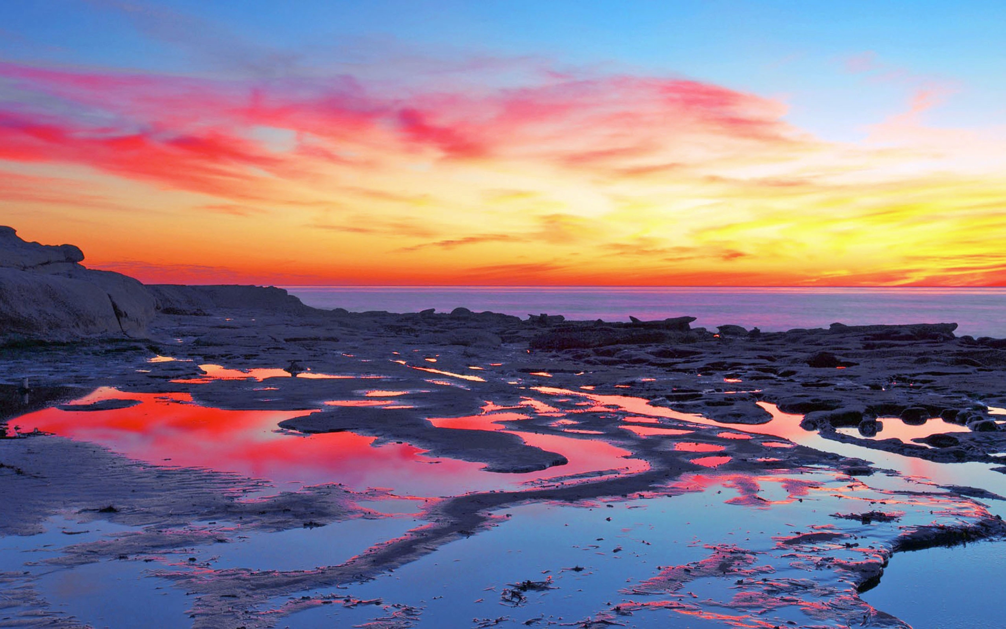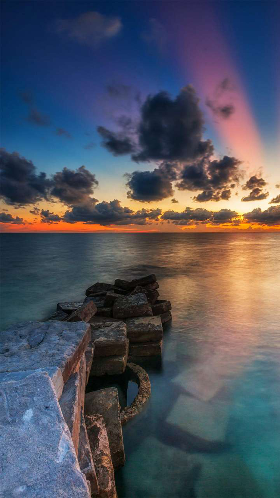 落日余晖,微风拂面,水面波光粼粼,大自然的美丽无法用言语描述